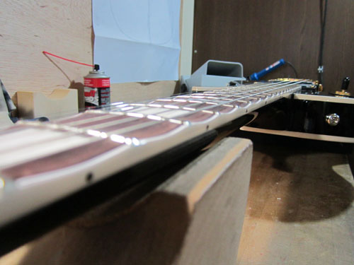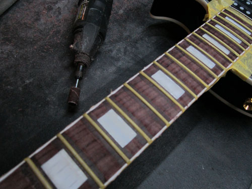 続いては常連の若きハードロッカーM様からからご依頼頂いたLPのフレット交換の作業です。