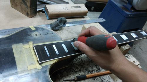 明日はフレット交換と塗装作業の続きからスタート予定です!
