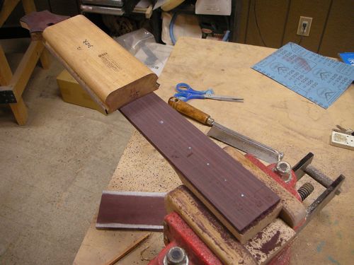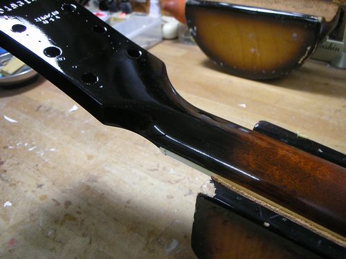 塗装完了品の水砥やアコギのピックアップ取付、