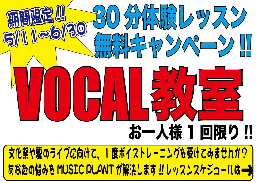 までVOCAL無料体験レッスン受付中!!