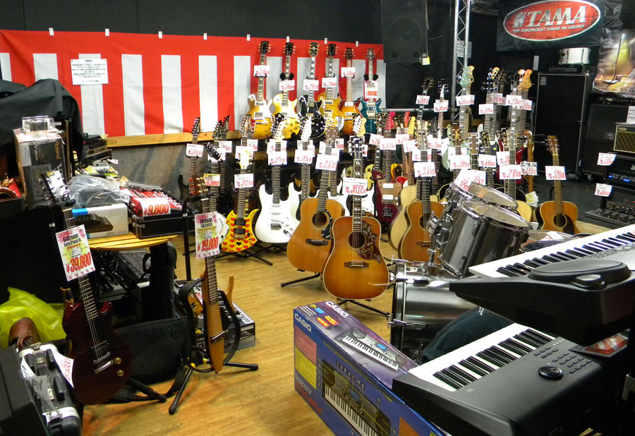会員様用のDMに載せきれなかった商材もひしめくA-1特設会場には、目を疑うビックリ価格の楽器や機材がびっしりだが、瞬く間にニコニコ顔のお客様達とともに自動ドアから旅立って行った。