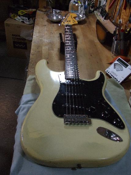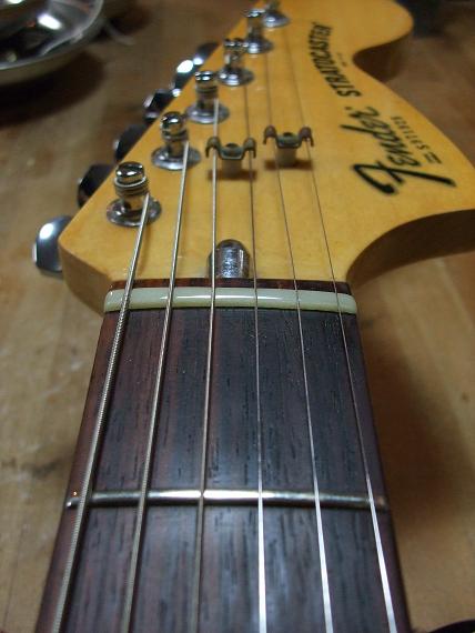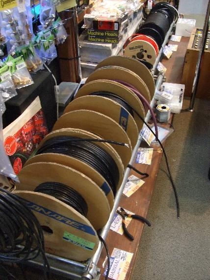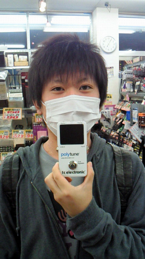 よく試奏をしてくれます。エフェクターやらギターやら。研究熱心です。最近は自分でギターを改造したり、ケーブルを作ったりと、かなりハマリニアック症候群です。