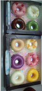 わー!美味しそうなドーナッツ!!って思うでしょ?じつは違うのですねー。これは、ケーキなのです(^0^)ババロアのようでチーズケーキのようでもある。ちょっと不思議な感じのデザートでした。 イチゴにマンゴーにミカンにキャラメル味にet…といろいろ種類も豊富で甘さも控えめでとっても美味しかったです。