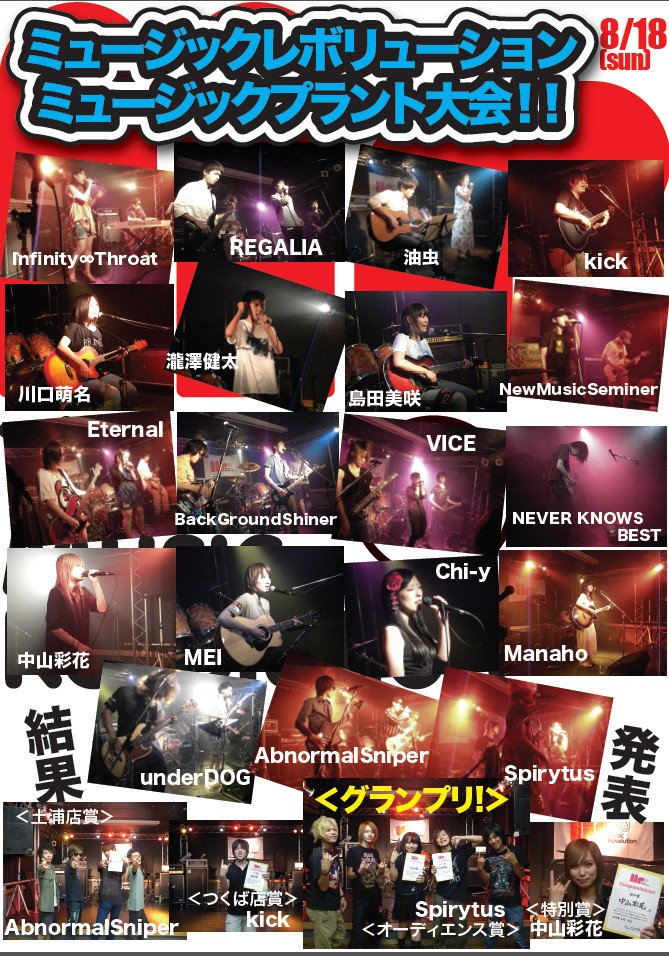 グランプリには届かなかったもののイイ線いってた『つくば店賞』『土浦店賞』は、kick とAbnormal Sniper !どちらもエモーショナルで熱い演奏でした。